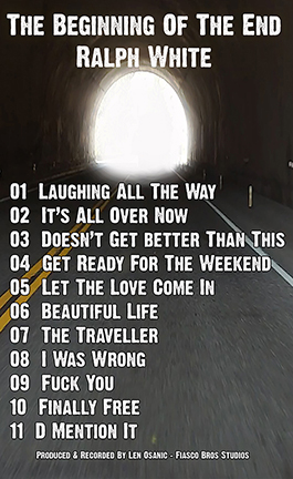 This exciting new album by Ralph White marks a turning point in his career. After years of fronting the band Slamm, Ralph has stepped out on his own and blown the doors off all his previous work. Producer Len Osanic ( Tommy Floyd, Marauder, Two Trains, Highway # 61, The Cartels) has thrown in the kitchen sink and come up with the raw twisted humour of Ralph as no one else has before. "The key to this album was getting keyboardist Robbie King away from his obligations with Bryan Adams" says Len. "Once we had that old Deep Purple, Steppenwolf, Hammond B-3 organ sound that Robbie can play, I knew that the album was going to rock. We got Robbie at a good time too ! He wanted to play a style of music that was a little more dangerous and out there than the stuff he had been doing with Bryan". No offence to Bryan's music, just that Ralph White knows because of his lyrics, most of his songs will never be played on the radio.